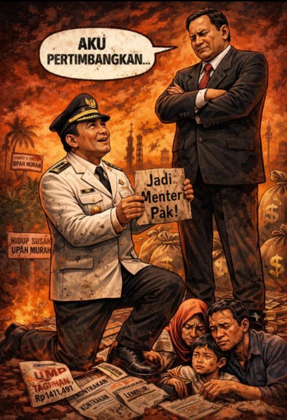 Maka persoalannya bukan sekadar apakah UMP naik atau tidak. Persoalannya adalah keberanian politik yang absen. Ketika kepala daerah lebih sibuk memastikan citra aman di mata elite nasional ketimbang memastikan buruh bisa hidup layak, maka fungsi kepemimpinan telah bergeser: dari pelayan rakyat menjadi pelayan sistem.